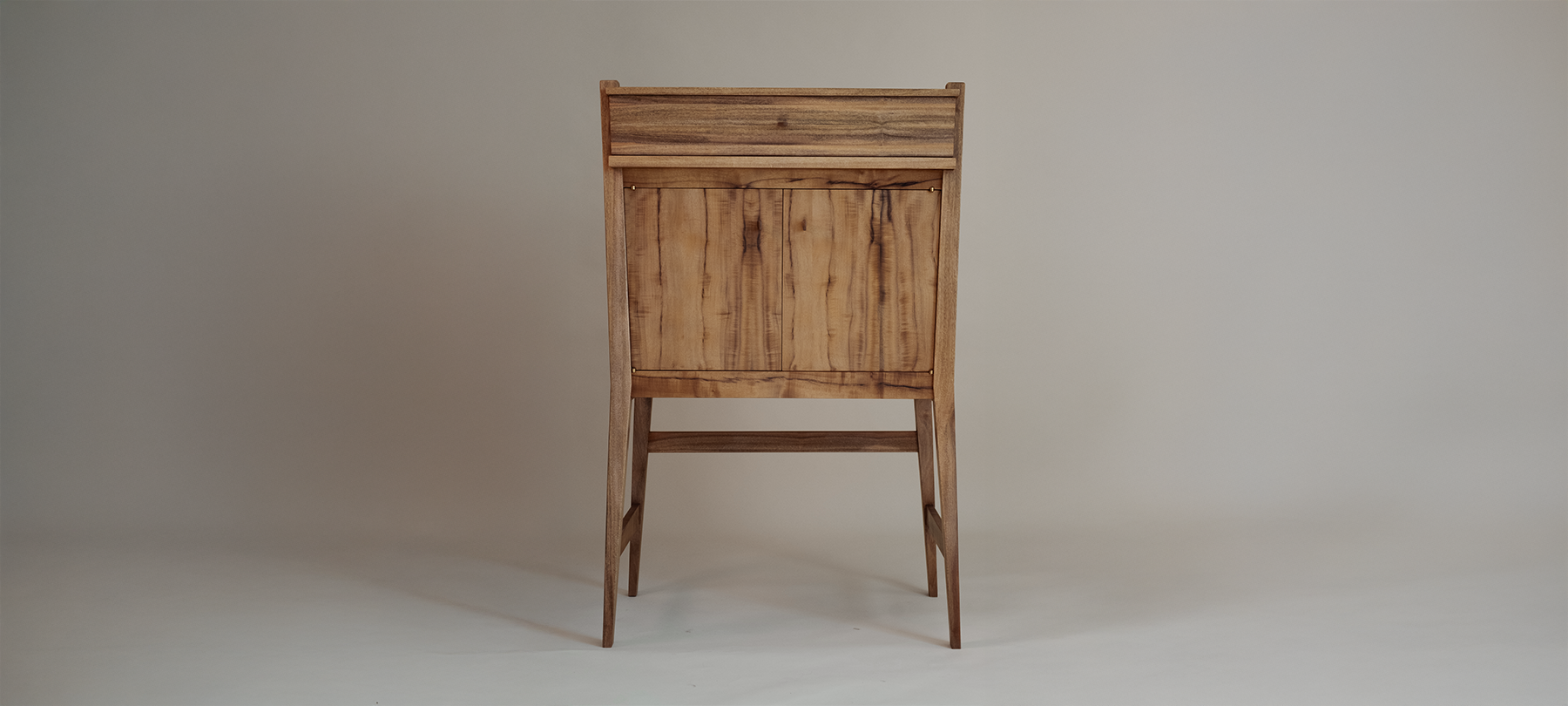 Potaito like Potatothe collection le Mistral a mighty writing desk with an ambitious sweeping facade le Héron a robust standing cabinet with unexpected angles and sleek lines les Sauterelles a spindly and sturdy set of stools