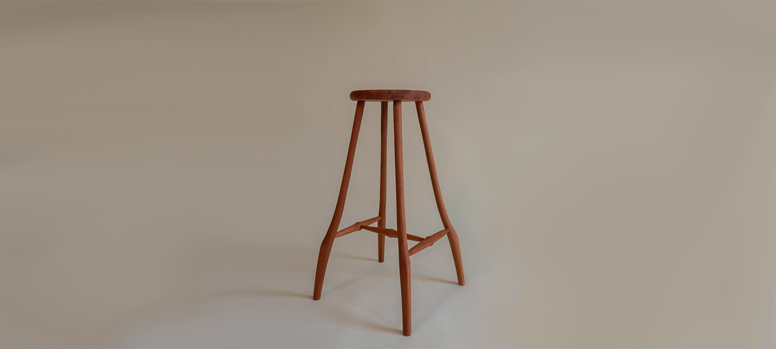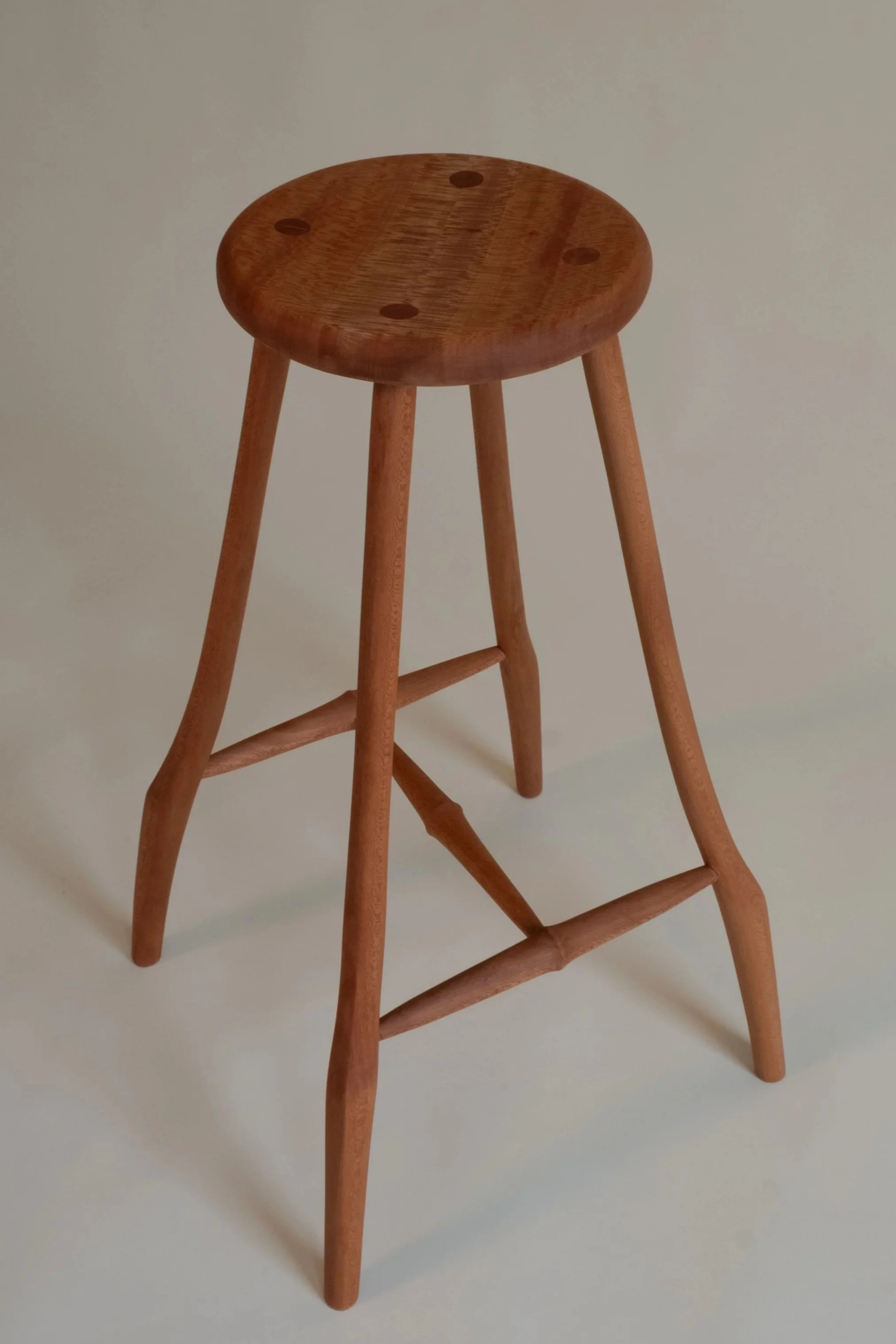 Wedged through-tenons are visible at the top of these spirited stools to ensure structural integrity while retaining elegant simplicity
